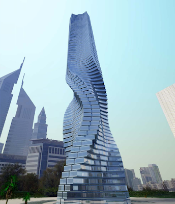 The latest addition is the Dynamic Rotating Tower by David Fisher. It's the first rotating skyscraper to be self powered and completely prefabricated.